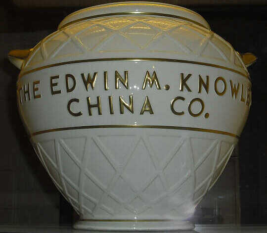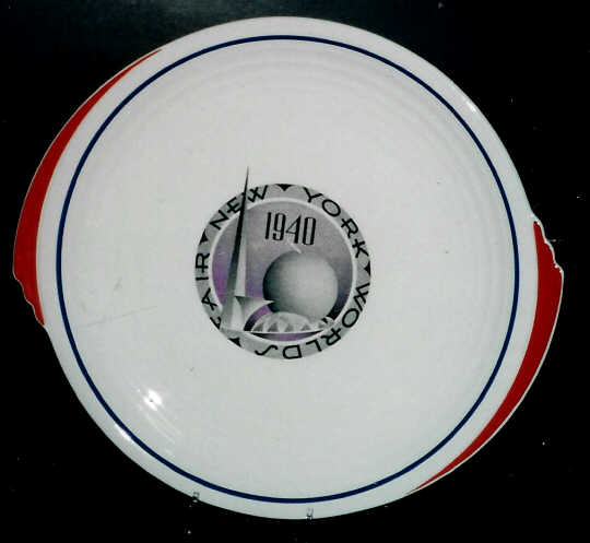 Each pottery made special souveniers for the Fair with Homer Laughlin taking the lead. Knowles produced a marmalade, service plate, 14" urn (for display only), and a small coaster, Cronin a cake set, Paden City a salad bowl, and Hall China a special teapot.