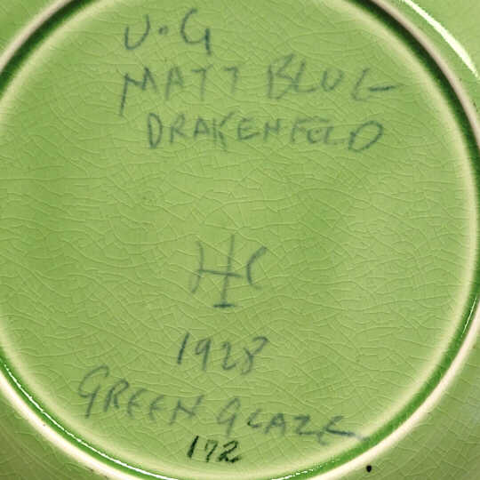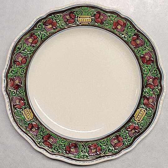 Old Roman was developed in 1928 and was made primarily in the green and a light yellow glazes commonly used in the Depression era. In the article "Old Roman Dinnerware" by Jeff Kolodey appearing in The Dish Vol. 13, No. 2, a patent date of an Old Roman plate is revealed as March 5, 1929.