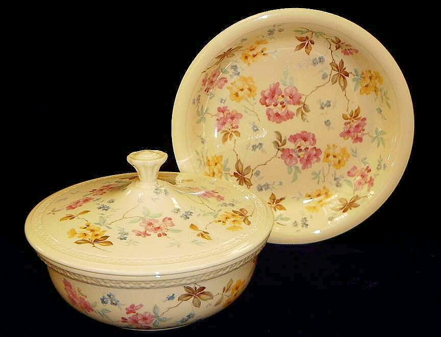 The first items created were made in two styles; plain and with the familiar floral embossing. Some of the items form the March 31st list were dropped and new pieces such as the French casseroles and shirred egg dishes were added. On June 9, 1933, Rhead noted producing several trial glazes for the cooking ware: