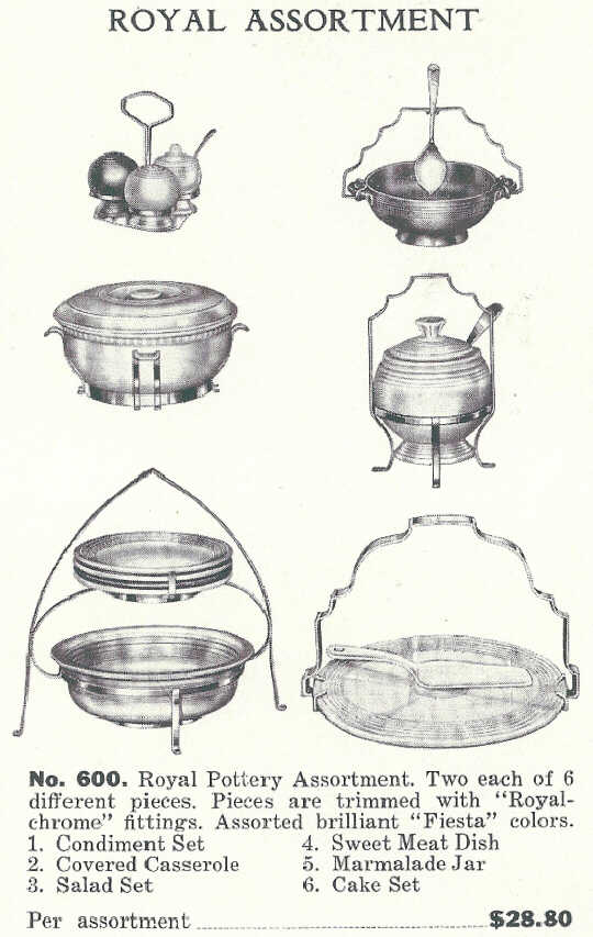On January 23, 1933, Frederick Rhead wrote in his journals about a "cooking and kitchenware program." After collecting samples of kitchenware from other companies, Rhead began making sketches of various items. By February 6th, he wrote that the drawings were "made into a folio and turned over to J.M. Wells." However. for the rest of the month the Art Department worked on the Chelsea shape for Quaker Oats and adding new items to the recently released and very successful Virginia Rose.