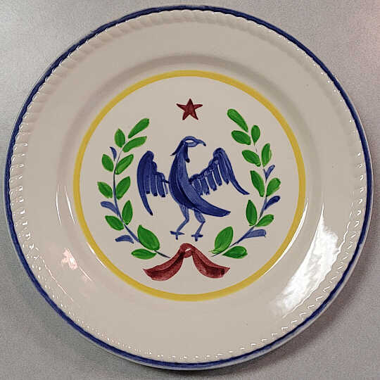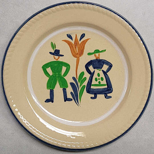 Rhead mentions the line again on March 23, 1940: ...spoke about Hand painted Peasant line for Woolworth's. Trying it without [trim]. House to be more solid. Also chimney to be perpendicular. Color to be stronger... It was determined in April 1940 the assortment would be a 9" plate, cup, saucer, 6" bowl, teapot, creamer, and sugar. However, on May 23, 1940, Rhead notes the line making use of all the Kraft Blue shapes except the 10" plate, baker, novelty creamer, and cream soup. The final designs were also listed at this time as: House, Flower Pot, Windmill, and Ship.
