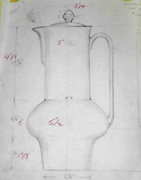 "Pedestal" is not a proper name for this experimental line. However, since it describes the distinct foot found on the hollowware, I am using it as an unofficial name. All of the examples and drawings are from the collection of The Fiesta® Tableware Company.