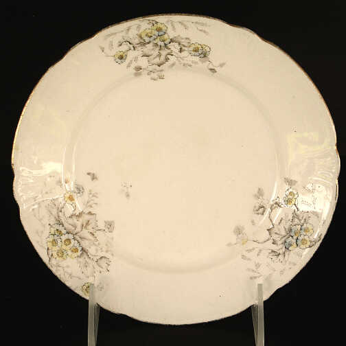 Rococo was first made by the Homer Laughlin China Company in 1891. The shape itself was discontinued by the late 1890s, however Rococo teacups, saucers, and platters were made until 1906. Pieces are generally marked with the "eagle over lion' backstamp.