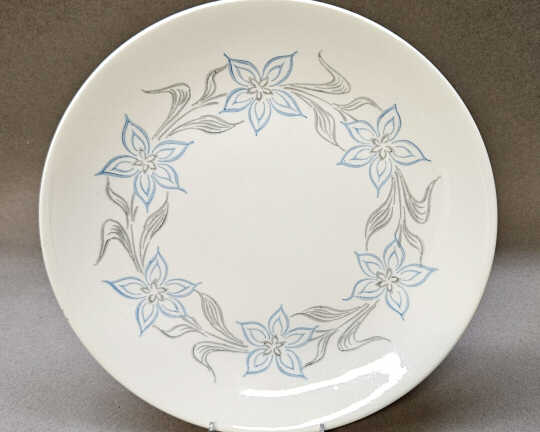 Most Dura-Print lines used the mushroom shaped Charm House hollowware. Because of its unique shape, Charm House was not ideal to receive the various Dura-Print treatments. As a result, Charm House was glazed in solid colors to match the Dura-Print patterns used on flatware. Studio, on the other hand, was made with even, sloped sides which could be decorated with the same patterns used on the flatware. For the Dura-Print line "Magnolia", the Studio hollowware was given interior pink glazes to match the pattern on the flatware.