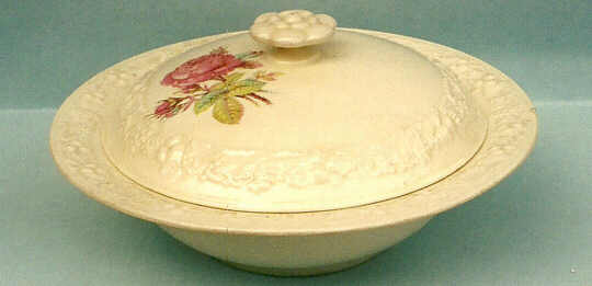 There was a point when it wasn't certain if it was to be of a regular body or in the light eggshell weight which was new at the time. On March 24, 1939, Rhead notes in his journals: G. Pittenger in. Asked if "Theme is to be in "Eggshell." Price lists are made out for Eggshell. Told him to see J.M. Wells who will be back today. Samples are in talc body and have been made light. Do not know definitely if the product is to be "Eggshell." All vintage Theme was made in the eggshell weight.