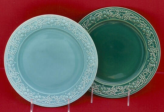 The original concept for Theme was taken directly from the very popular line of Jasperware made by Josiah Wedgwood & Sons of England. The new line was to have slip decoration which involves placing relief designs made from colored slip (or clay) onto the surface of dinnerware. In this case, the slip was made in the different colored clays. Modeled fruit borders was made in the colored clays, applied to an Eggshell Nautilus plate, then given a clear glaze.