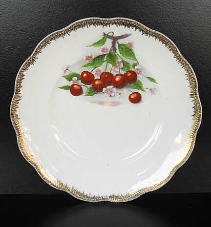 The Croxall Chemical and Supply Company of East Liverpool, Ohio was one of many suppliers of decals to local potteries. Shown is a cherries decal Croxall sold to Homer Laughlin, circa 1910. It came in at least three different sizes with bright red cherries and small white blossoms. Shown below are three Homer Laughlin shapes available at the time; The Angelus, Niagara, and Genesee.