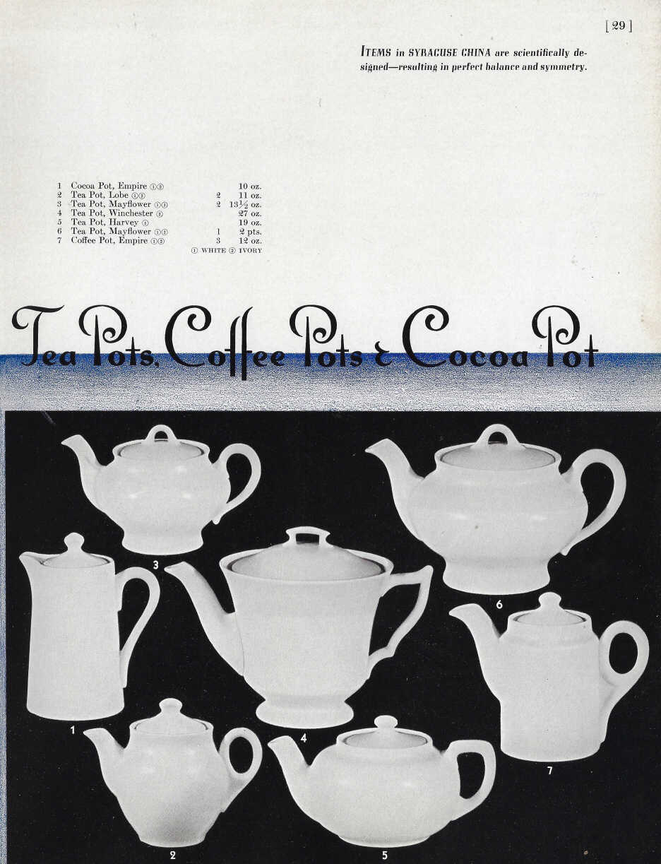 Syracuse China catalog by Onondaga Pottery Compnay of Syracuse, New York. The pages below show Syracuse's fully vitrified and craze-proof service ware shapes (and some patterns) from 1937.