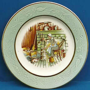 The most striking feature is a sculptured edge that gives the ware a three-dimensional effect. It features a border of entwined leaves and blossoms on a traditional wide shoulder with a recessed ivory center.